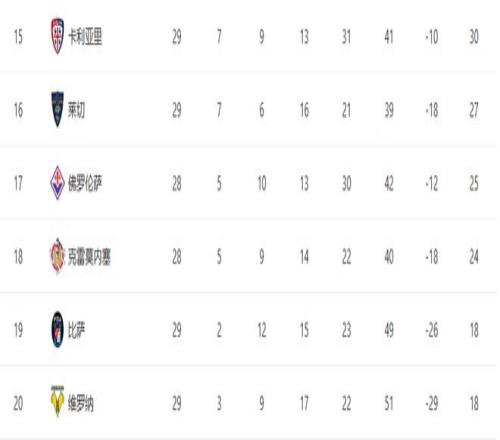 随着大黑马21罗马+AC米兰01爆冷!意甲最新积分榜:25名差7分