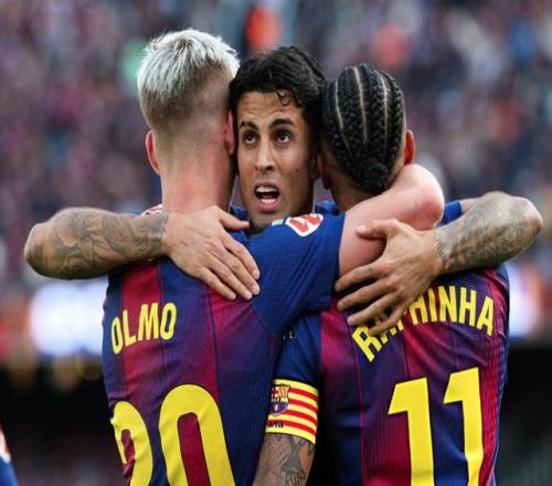 第20分钟,坎塞洛的带球导致卡莫纳手球,巴萨再次获得点球。坎塞洛制造的2个点球,均由拉菲尼亚罚入。