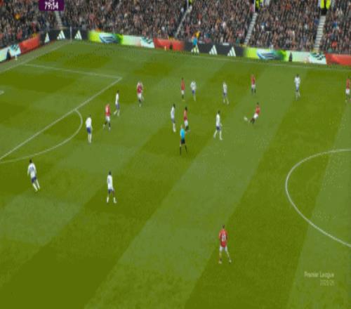 想要打出优势,就需要冒一点风险,于是在下半场回来,曼联明显提高了强度,于是在进攻端的跑动量进一步提升,这使得曼联在短时间内打出多次进攻镜头: