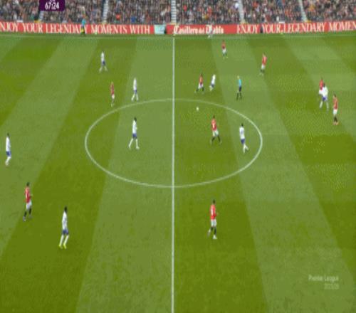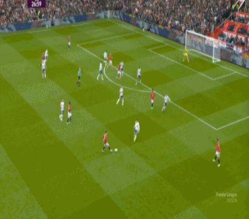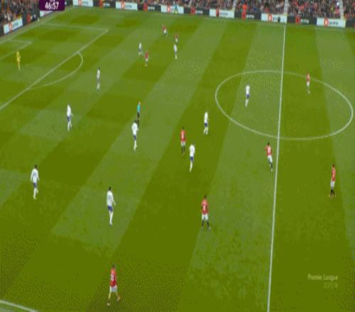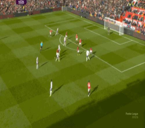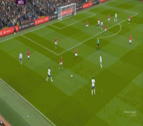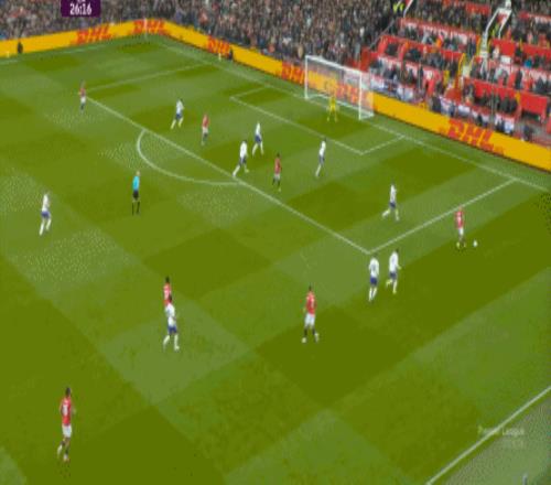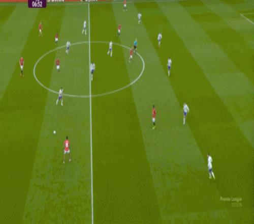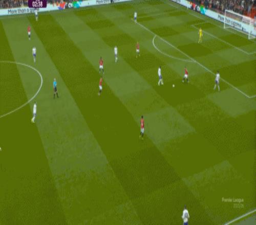 就在这次制造的前场界外球里,曼联转移到左路,从而制造了本场比赛的第一次进攻威胁,也就是上半场前半段只能打出来的传中: