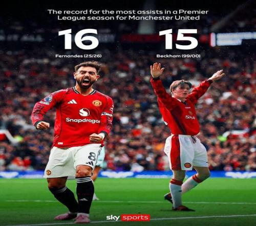 曼联3-1击败阿斯顿维拉的比赛中,队长布鲁诺·费尔南德斯居功至伟,他送出两次助攻,不仅奠定胜利,而且个人超越了贝克汉姆26年前创造的单赛季英超15次助攻的俱乐部纪录。红魔名宿鲁尼和埃弗顿球员格拉利什,都公开赞扬B费的比赛令人赏心悦目。