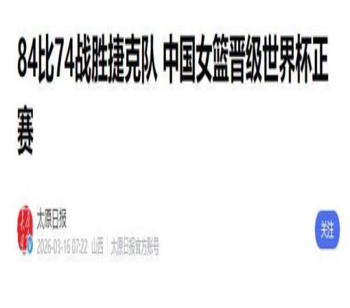3月15日晚,中国女篮在世预赛第四轮主场迎战捷克队,经过四节激烈对抗,最终以84-74战胜对手,拿到本场比赛胜利的同时,也成功锁定2026年柏林世界杯的参赛资格。