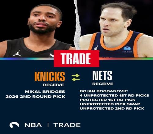 2024年夏天,尼克斯从篮网得到布里奇斯和1个次轮签,送出去的是博扬、5个首轮签、1个首轮互换权和1个次轮签。5个首轮里有4个是自己的,全是无保护,还有一个是雄鹿的2025年前4保护首轮。