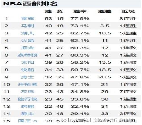 今天7场比赛打完,排名也有了一些有意思的变化。国王队战胜了爵士,豪取两连胜,就像一个在逆境中奋起的勇士,没有因为战况不佳就索性摆烂,这精神值得点赞。不过呢,“代价”就是在竞争无比激烈的冲冠集团中,不小心掉出了联盟倒三的位置。勇士队的战绩来到了32胜35负,距离前面的快船有两个胜场的差距,只领先身后的开拓者0.5个胜场,这排名就像在悬崖边上走钢丝,稍有不慎就可能掉下去。同时,44胜25负的尼克斯提前锁定了保底附加赛席位,就像提前拿到了一张通往季后赛的“入场券”。