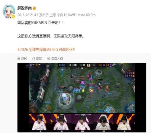 体育播报3月16日宣 先锋赛首日BLG对阵BFX,首场比赛BLG狂虐对手,解说怀南赛后点评: