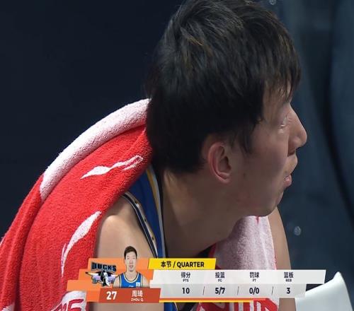 第四节最后6分钟,周琦替换麦基重新回来收割比赛,北京再次主打一五挡拆,与此同时,大比分落后的天津没有放弃,外线疯狂出手,郑昊燃、李宗霖连中3记三分追到14分分差。