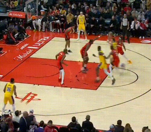 顿宝这个抢板补篮竟然突然为湖人打开了僵局。