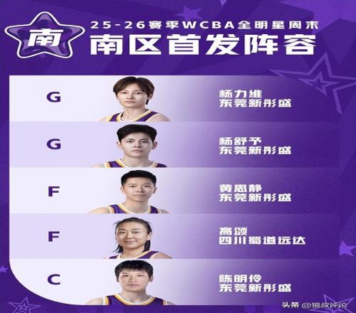 南区首发球员为:杨力维、杨舒予、黄思静、陈明伶(东莞新彤盛)、高颂(四川蜀道远达),杨力维以224706票成功当选票王。