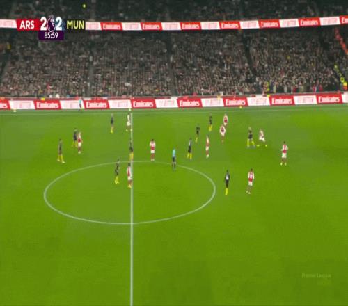 另一个例子来自接下来一周3比2战胜阿森纳的比赛,曼联门将拉门斯大脚长传找谢什科,梅努和费尔南德斯处于争夺第二点的理想位置。