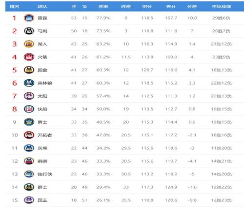 今日比赛后鹈鹕、独行侠排名互换,其他西部球队排名不变。