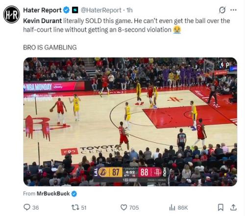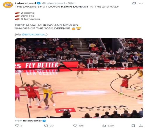 湖人媒体Lakers Lead还专门制作了杜兰特整个下半场的拉胯集锦,各种的被包夹失误、出手打铁等等。