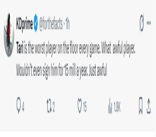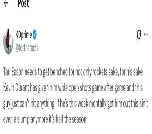 KD球迷:伊森是场上表现最差的球员,他是一个很糟糕的选手,就算给他每年1500万都不值,他太差劲了。