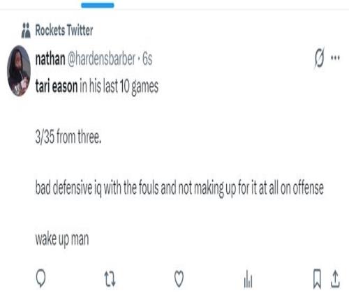 火箭博主:伊森在场一直给火箭负面的影响,他的先发席位应该让给谢泼德。