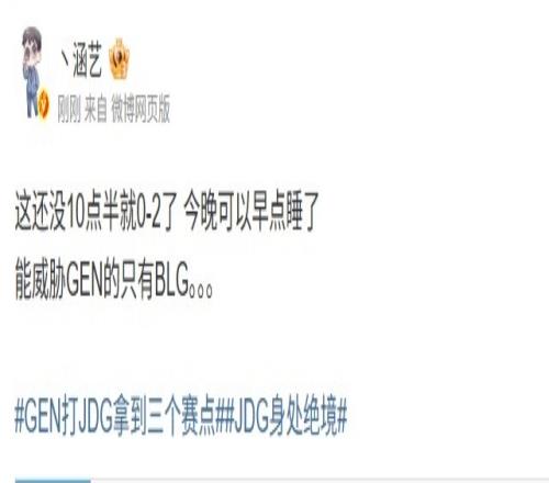 涵艺:这还没10点半就02可以早点睡了能威胁GEN的只有BLG...