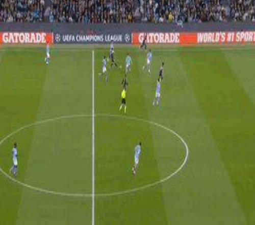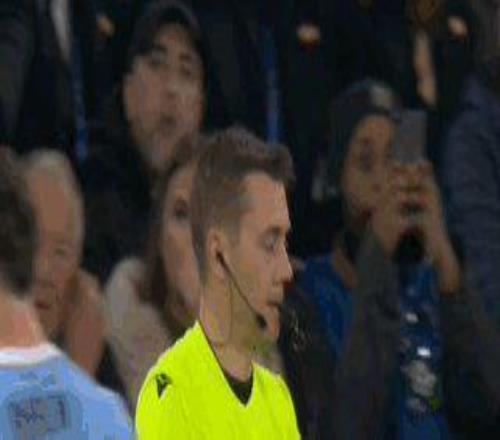 第17分钟,巴尔韦德直塞,维尼修斯左路内切后射门中柱弹出,皇马二次进攻,维尼修斯禁区右侧再次射门,B席在门线上用手臂将球挡出,VAR复核后确认B席手球,主裁判蒂尔潘判罚点球,并将曼城队长红牌罚下。
