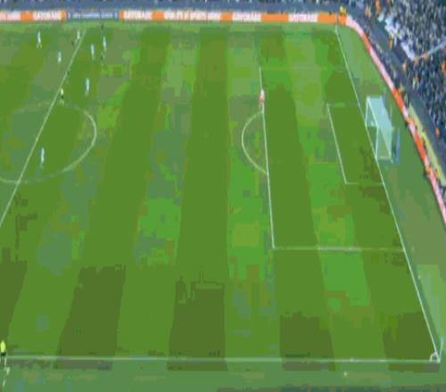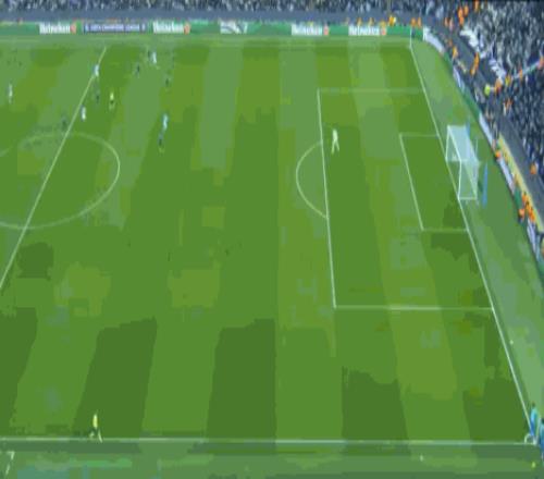 第39分钟,居莱尔主罚任意球直接打门,皮球击中人墙飞出底线