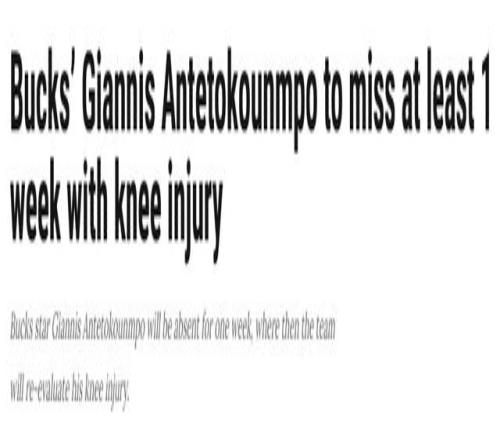 字母哥左膝过度伸展+骨挫伤!至少缺阵一周雄鹿冲附加赛更没戏了
