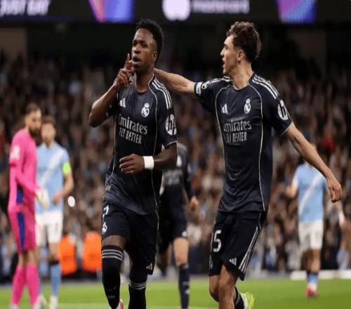 皇马没给曼城任何机会。首回合3-0领先已占先机,次回合开场22分钟,B席门线手球送点+红牌,维尼修斯一蹴而就。尽管多库助攻哈兰德扳回一城,但少打一人的蓝月军团难挽颓势。下半场姆巴佩伤愈替补登场,维尼修斯读秒再下一城,完成梅开二度。最终皇马2-1再胜,总比分5-1淘汰卫冕冠军,剑指第16座大耳朵杯。