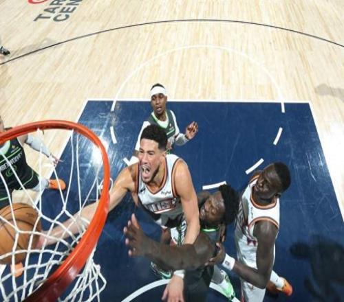 在所有人都认为面对森林狼,格林会再次爆发的时候,他给你拉了。全场17中3的命中率拿到9分。全队基本上指望布克,他空砍34分6板3助。森林狼这边兰德尔32分7板,海兰德22分,麦丹16分7板,戈贝尔9分19板1助4帽。这就是杰伦格林让球迷又爱又恨的原因,当你觉得格林不行的时候,他能超神5场。