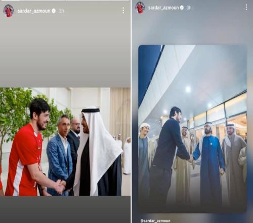 体育播报03月18日宣 据伊朗媒体《法尔斯通讯社》报道,31岁伊朗球星阿兹蒙晒出与阿联酋领导人的合影,已经被伊朗国家队开除。