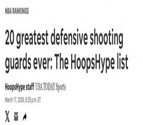 在NBA常规赛进入冲刺阶段之际,美媒《hoopshype》更新公布出NBA分卫防守能力TOP20名单,其中现役仅一人入选,韦德位列第10,科比高居第4。