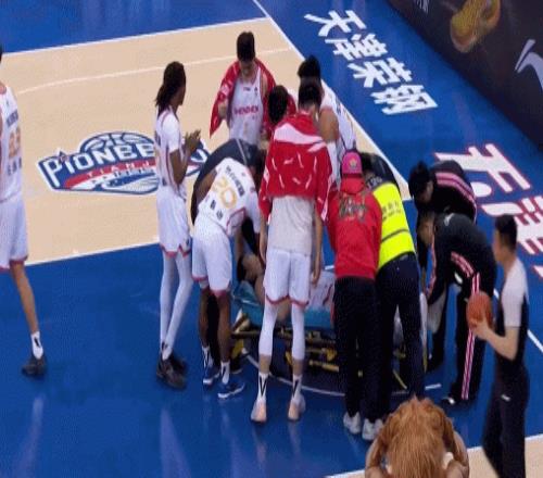 本场比赛,深圳男篮球员冯熙瑞在防守时空中对抗后重摔在地,随后被担架直接抬走。