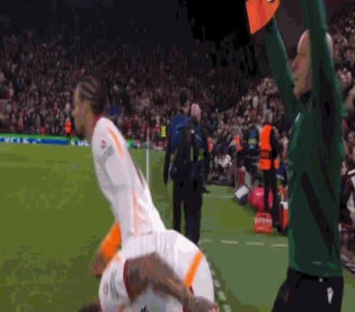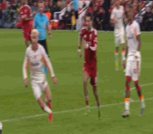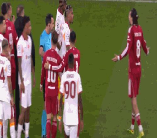 第90分钟,麦卡利斯特破门,但是主裁判罚范戴克犯规在先