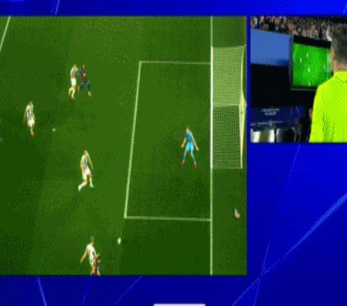 伤停补时阶段,费尔明右路突破传中,拉菲尼亚门前倒地,投诉特里皮尔拉拽犯规,裁判回看VAR后判罚点球并出示黄牌。