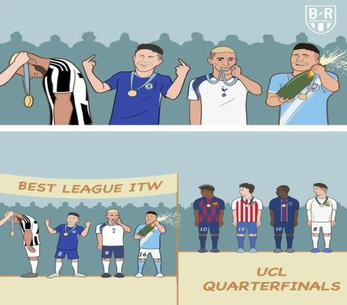 相比英超1/8决赛过山车般的6进2和惨案不断,欧陆四大联赛豪门表现依旧稳定。皇马、巴萨、大巴黎和拜仁均大胜晋级:大巴黎总比分8比2双杀,报了去年世俱杯决赛输给切尔西丢冠之仇;皇马和巴萨也都分别大比分击败曼城和纽卡斯尔联,拜仁总比分10比2横扫意甲独苗亚特兰大也是实力差距的体现。欧陆TOP4豪门连续3个赛季至少进入欧冠8强,至少在欧冠8强层面保持住了近年欧陆四大联赛对英超的强势。