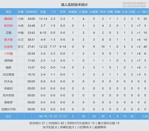 东契奇先是助飞詹姆斯,紧接着大心脏三分飙进。最后1分钟,湖人领先到9分,火箭大势已去。全场结束,湖人124-116击败火箭,湖人豪取7连胜。东契奇25投12中砍下40分9板10助、詹姆斯14投13中高效率砍下30分5板2助。