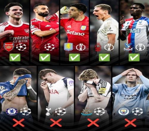英超9队参加欧战最终5队晋级:欧冠4队出局