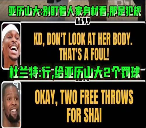 杜兰特则回复称:“好的,把这两个罚球给亚历山大”。