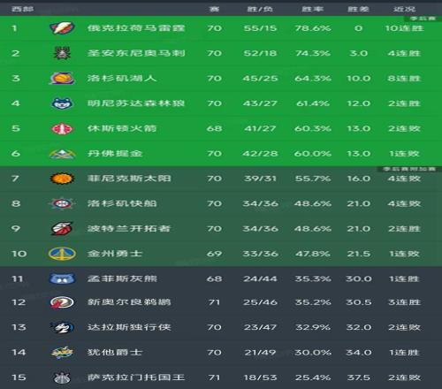 北京时间3月20日,今日的NBA常规赛结束了所有比赛,我们看看西部的最新积分榜,主要的信息是:马刺101-100绝杀太阳,湖人134-126热火豪取8连胜,快船99-105鹈鹕,国王118-139惨败76人,爵士128-96大胜雄鹿!