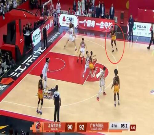 广东队输在了哪?先来看看第四节最后阶段发生了什么,当时广东手握8分领先,江苏暂停过后,贾尔斯先命中弧顶三分将分差缩小到5分,随后胡明轩一个回场接球违例送江苏球权;