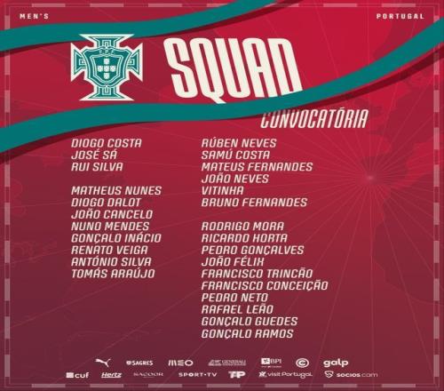 葡萄牙大名单:C罗伤缺,B费、维蒂尼亚领衔,菲利克斯、莱奥入选
