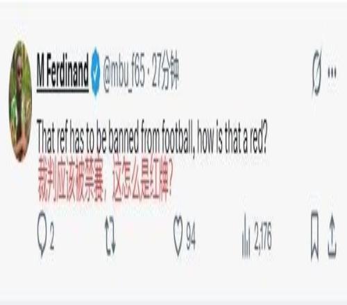 赛后愤怒的曼联球迷纷纷跑到英超官方社媒账号下面刷屏留言宣泄不满:“本场最佳当属主裁!”:“建议调查下裁判,是不是被收买了?”