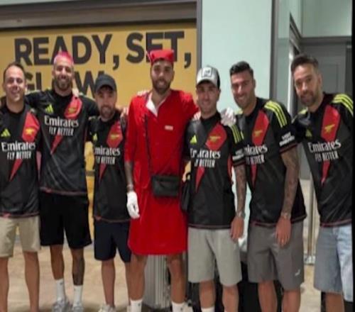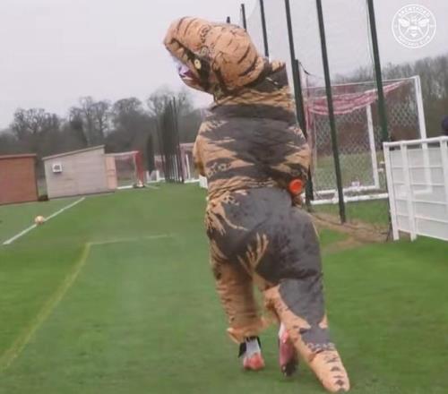 显然是在我的单身派对上,朋友们让我打扮成空乘人员的样子去美国。另外,我在布伦福德膝盖受伤复出后,第一次训练时,我打扮成了恐龙的样子。​