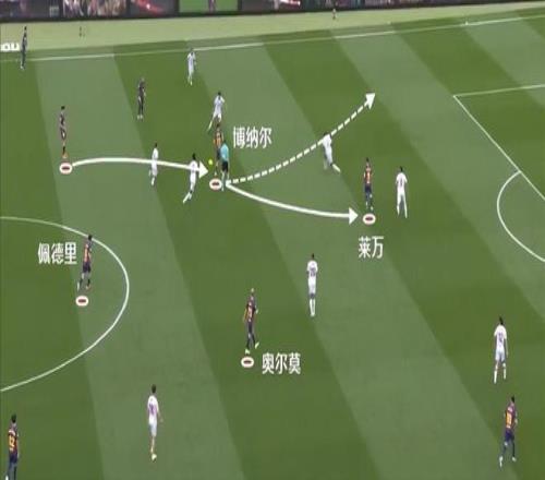 对手的确没有料到巴萨后腰从德容变成贝尔纳尔之后,会有这样的战术变化。事实上哪怕是使用卡萨多,也不会看到他前插进攻三区的肋部。