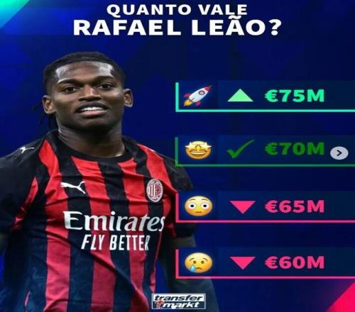 德国转会市场即将更新意甲球员身价,官方社媒预热了米兰球员莱奥的身价调整选项数字。
