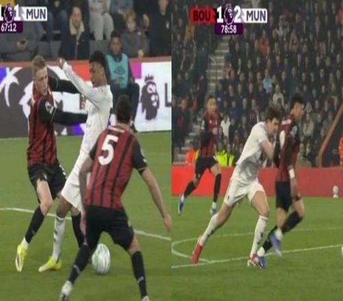 比赛的关键转折点出现在马奎尔对埃万尼尔松的犯规上。当值主裁直接向这位曼联中卫出示红牌将其罚下,并判给伯恩茅斯一粒点球。随后,朱尼奥·克鲁普主罚命中,将比分扳为2-2。这使得曼联在比赛的最后阶段不得不以十人应战,最终艰难地保住了一分。
