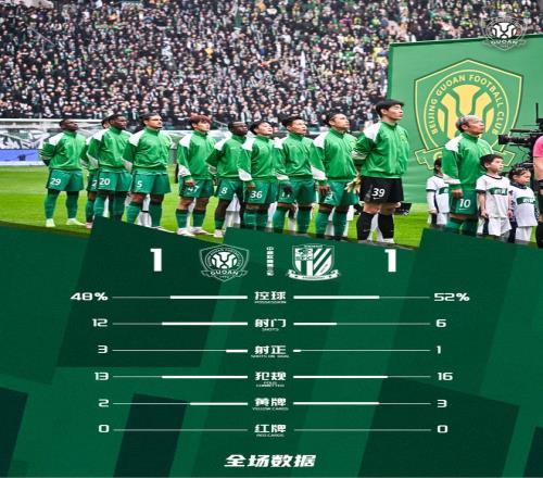 3月21日,2026怡宝中超联赛第3轮进行,北京国安主场1-1战平上海申花。