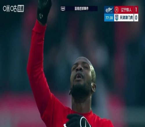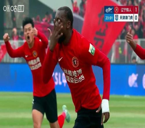 另外一场比赛中,升班马辽宁铁人主场迎战天津津门虎。上半场第23分钟,辽宁铁人左路传中送到禁区,姆本扎第一次射门被封堵,但随后的补射还是将皮球送入球门,辽宁铁人斩获队史中超首球,并1-0取得领先。