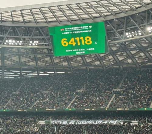北京时间2026年3月21日消息。今天下午,中超联赛上演一场焦点战,北京国安主场VS上海申花。双方经过90分钟激战,最终国安1-1战平申花,张玉宁、陈晋一分别建功。本场比赛工体观众人数为:64118人。