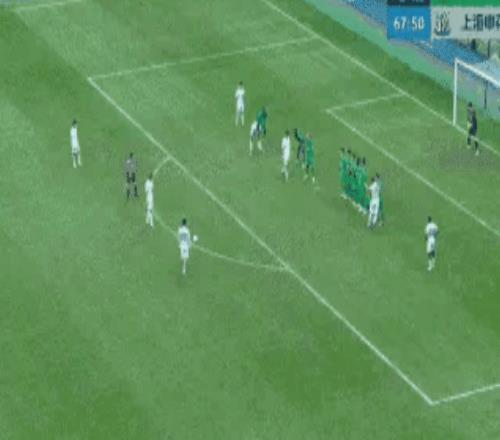 第68分钟,申花获得前场任意球,左边后卫陈晋一展现了顶级的左脚脚法,皮球兜出漂亮的弧线,申花1-1国安!