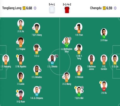替补未出场:1-蹇韬、15-冉伟枫、3-亚历斯租、19-董岩鋒、22-李扬、23-廖力生、39-甘超、48-李漠雨