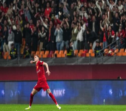 第40分钟,韦世豪前场反抢成功传给韦林顿,后者禁区前沿弧顶直接远射轰出世界波破门,成都蓉城将比分扩大至2-0。韦林顿做出姆巴佩标志性庆祝动作,前3轮他打进3球。