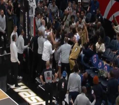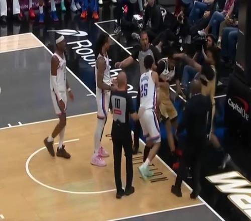 尚帕尼推了一下米切尔,没想到他一下子就火气上来了,直接冲了上去,尚帕尼这边倒是直接被裁判护到了安全区。而奇才另一位球员安东尼·吉尔本来想上来拉架的,没想到直接被推翻在地,被杰林·威廉姆斯、米切尔和华莱士压着,直接形成了3打1的局面。随后裁判经过回放,雷霆这边的杰林、米切尔和华莱士全被驱逐,奇才尚帕尼也被驱逐。