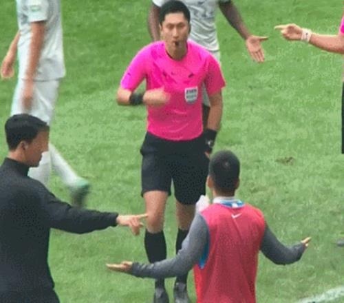 这下,中超的又一名场面出现了——面对中超“金哨”铁面无私的怒指,这位前广州队后卫不仅没有马上吓退,反而一个转身,背身就是一阵仰天狂笑(下图),以此来表达心中的郁闷。