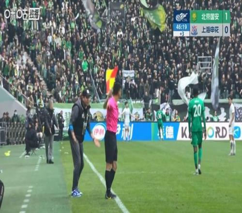 整体而言,这场比赛马宁的判罚没有多少瑕疵,唯一让上海申花产生质疑的就是上半场伤停补时阶段的一次判罚。第45分钟时,此时的申花0比1落后,年轻前锋刘诚宇带球到边线附近,一个扣球往里时,边裁举旗示意皮球已经出界,判给北京国安一个界外球。