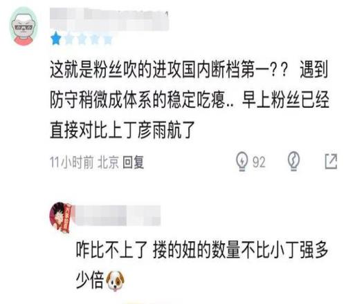 郭昊文的低迷,也引起了球迷的热议:“这就是粉丝吹的进攻国内断档第一,遇到防守稍成体系的稳定吃瘪”、“咋比不上丁彦雨航了?搂妞的数量不比小丁强多少倍”。